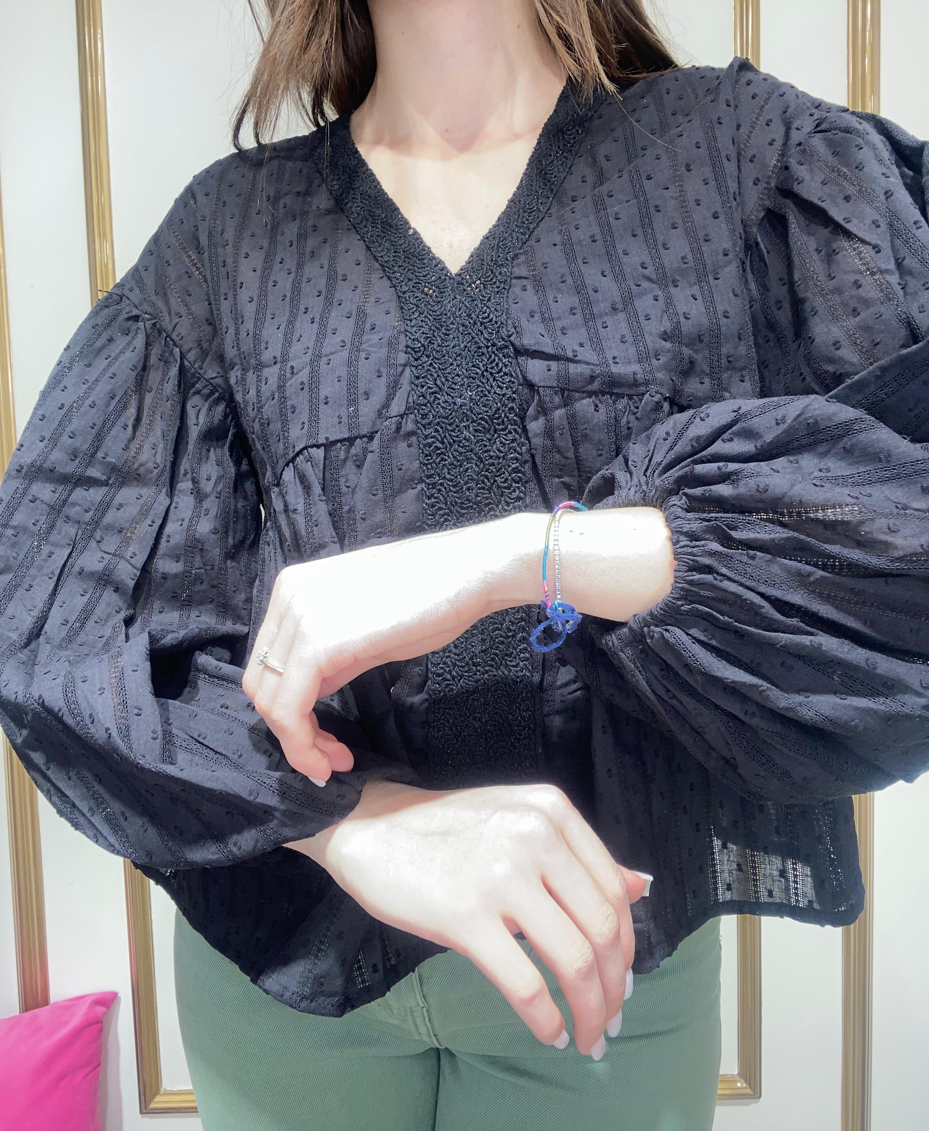 Camicia pizzo San gallo , con manica a palloncino , svasata sul fondo