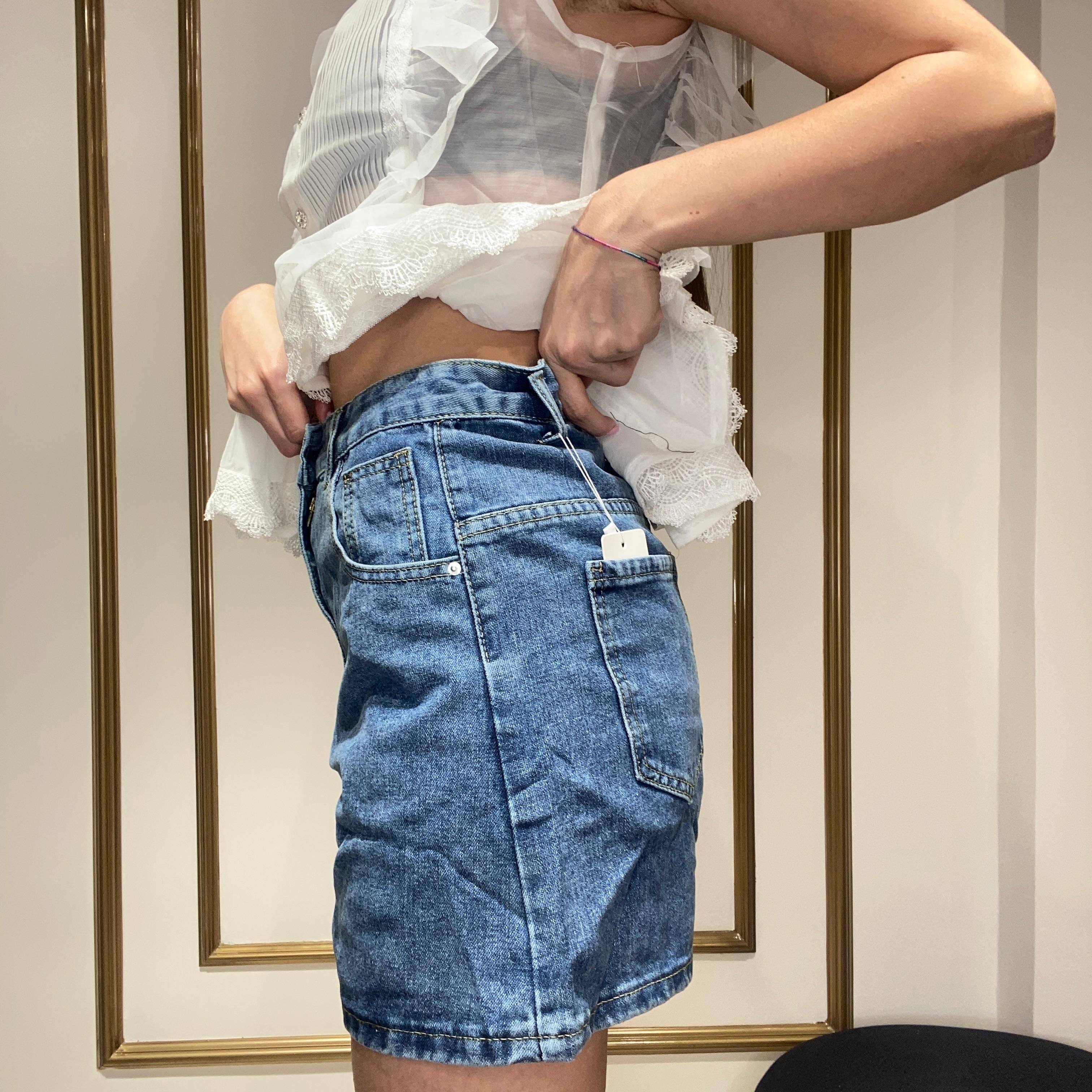 Pantaloncino di jeans gamba larga , vestibilita vita alta tessuto elastico
