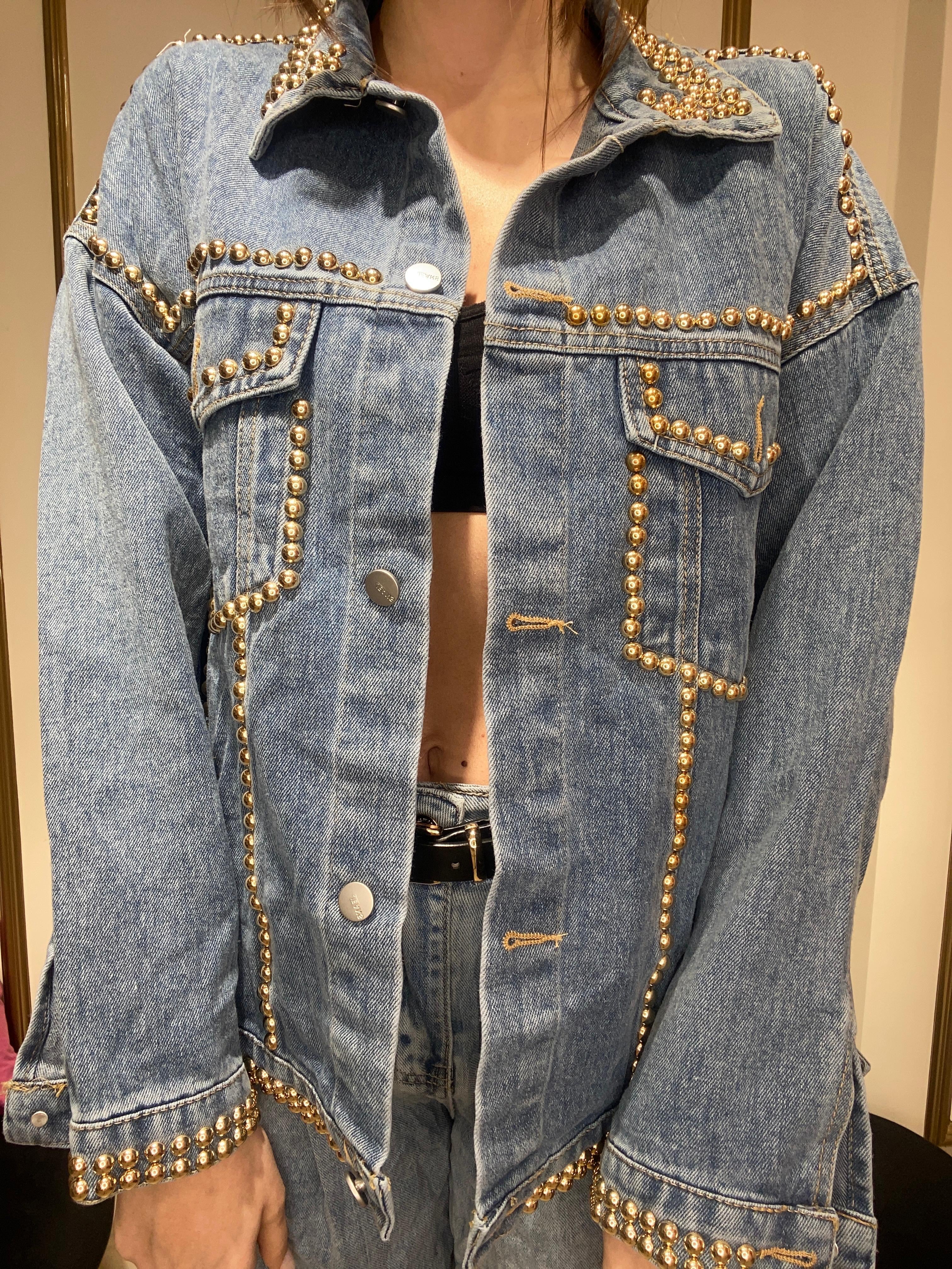Giubbino jeans vestibilita over con borchie
