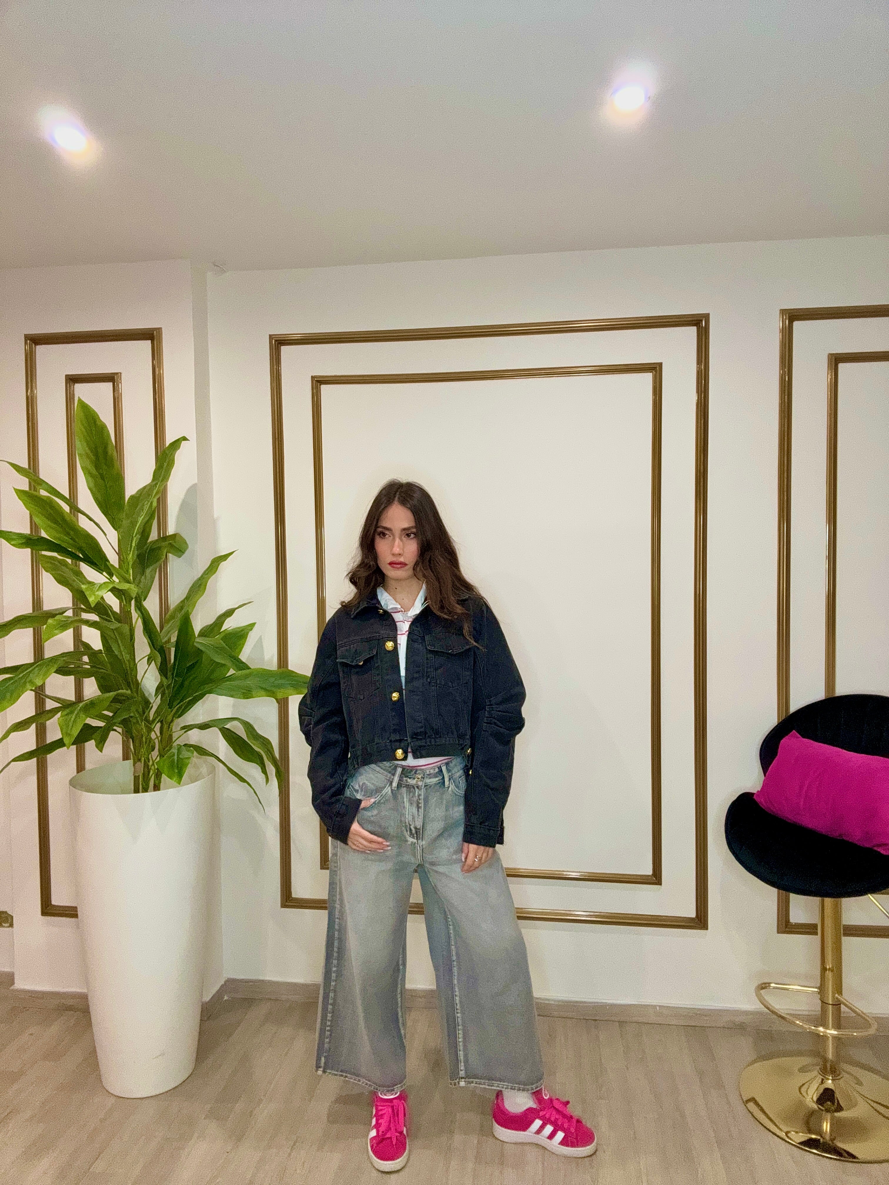 Giubbino taglio un po' asimmetrico , dettaglio bottoni oro , manica sbuffo