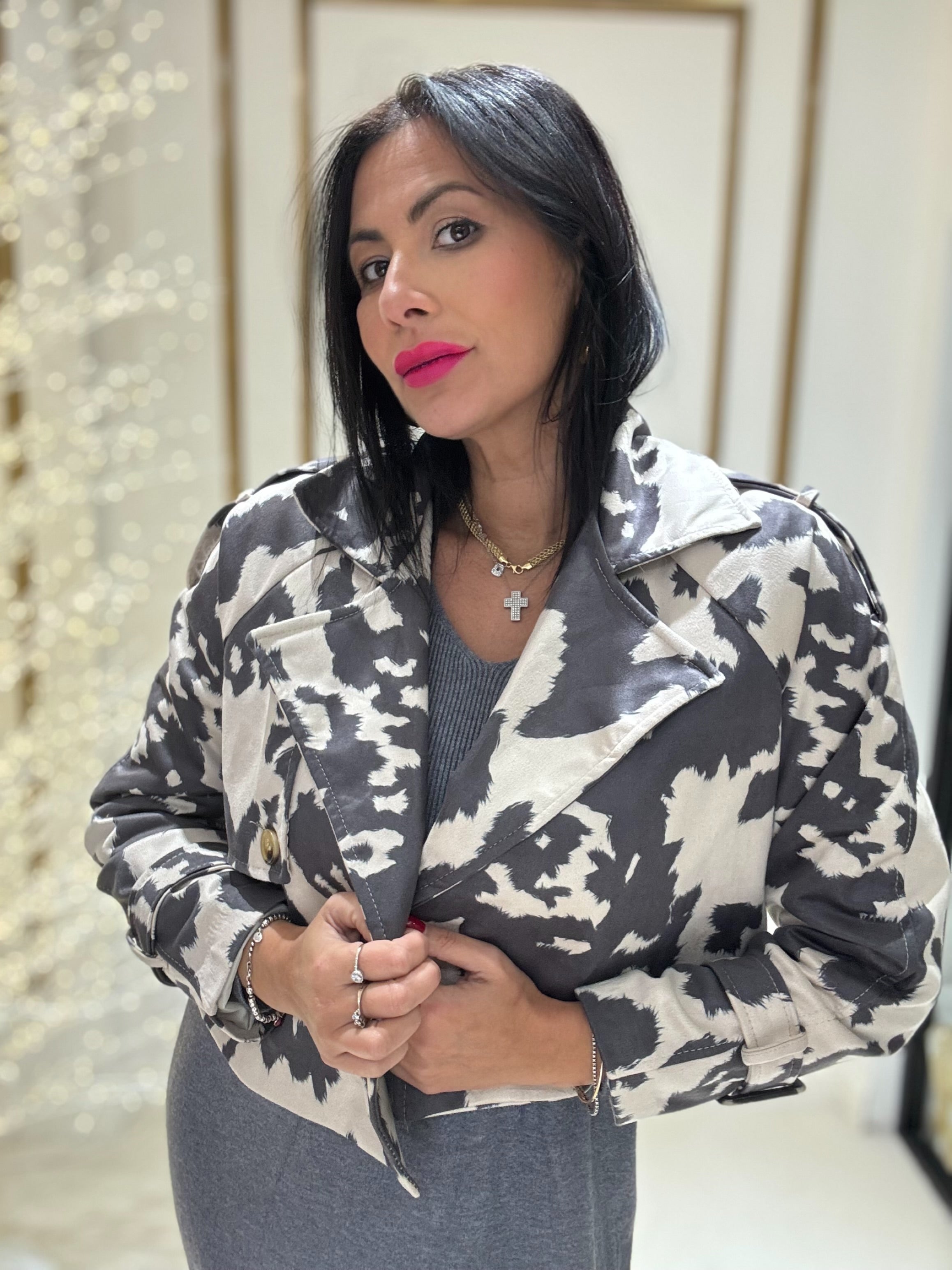 Trench crop fantasia muccata in camoscio, vestibilita fino ad una 44